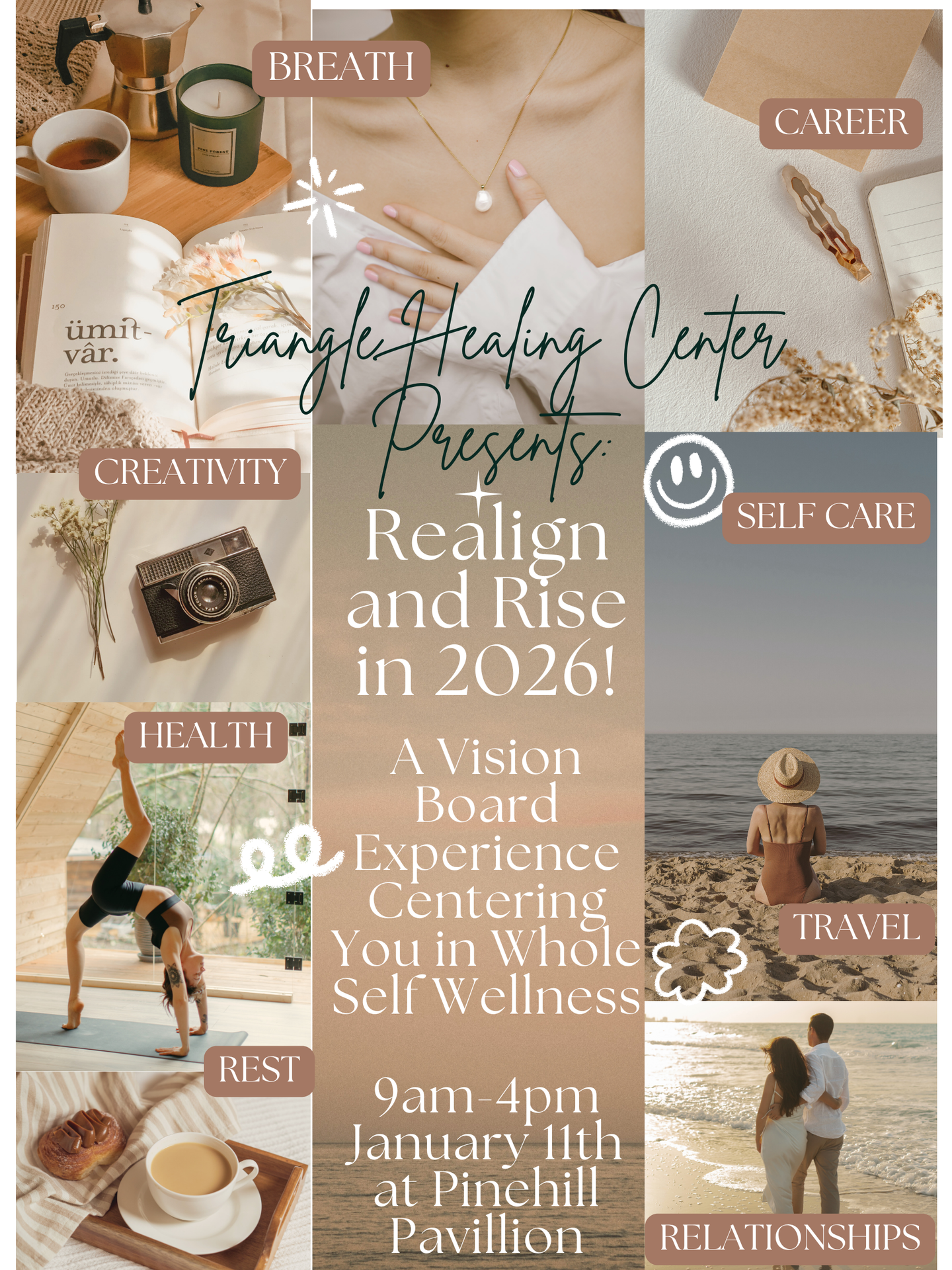 Join us Sunday 1/11 9am–4pm (it’s Kimberly’s birthday party) for a deeply nourishing Whole-Self Wellness Workshop + Vision Board Experience designed to help you start the year centered, aligned, and empowered. Lead by a Licensed Somatic Trauma Therapist (Kimberly LaPorte), a certified Wellness Coach and Counselor (Megan Nelson), and a certified Yoga, Breath and Sound Healing Practitioner (Hyun Pak)...all experts at their craft and sharing their gifts and knowledge with you (a $1000 value for $111!)